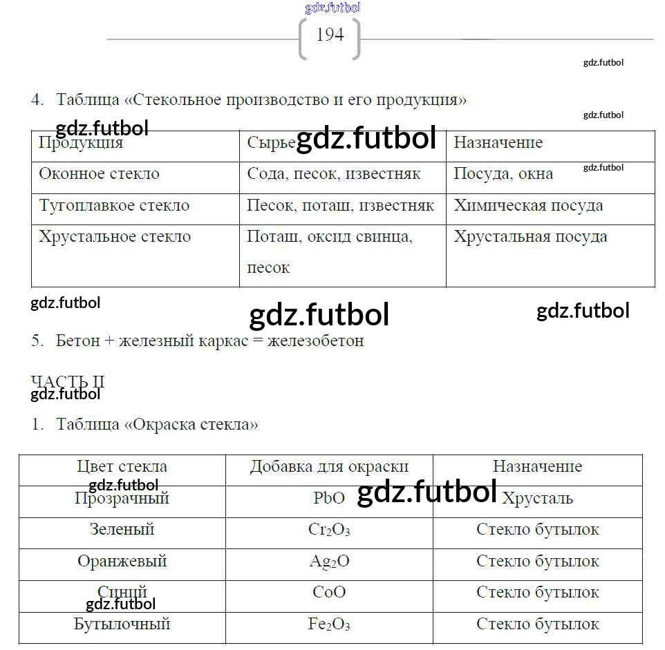 Готовые домашние задания по Химии за 9 класс Габриелян Рабочая тетрадь Вертикаль 2014 ФГОС - Страницы 194