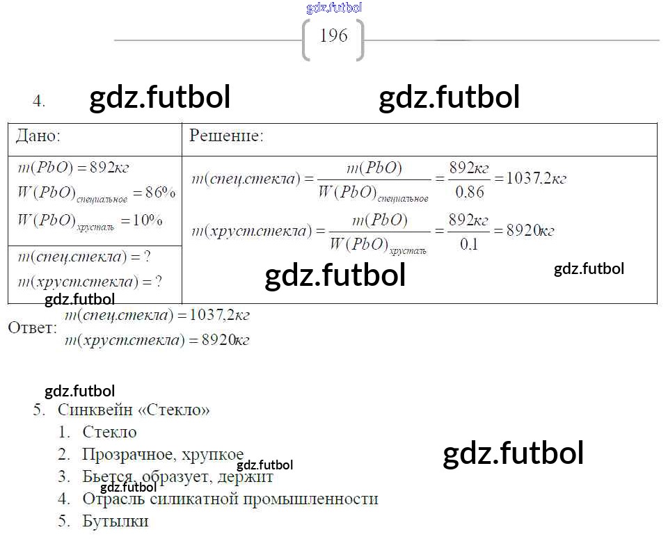 Готовые домашние задания по Химии за 9 класс Габриелян Рабочая тетрадь Вертикаль 2014 ФГОС - Страницы 196