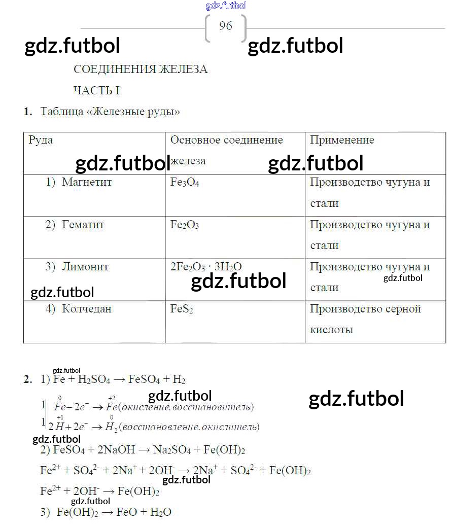 Готовые домашние задания по Химии за 9 класс Габриелян Рабочая тетрадь Вертикаль 2014 ФГОС - Страницы 96
