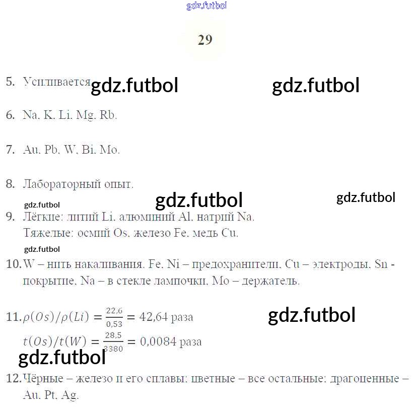 Готовые домашние задания по Химии за 9 класс Микитюк Рабочая тетрадь УМК 2014 ФГОС - Урок 10. Физические свойства металлов стр.29
