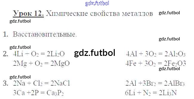 Готовые домашние задания по Химии за 9 класс Микитюк Рабочая тетрадь УМК 2014 ФГОС - Урок 12. Химические свойства металлов стр.32