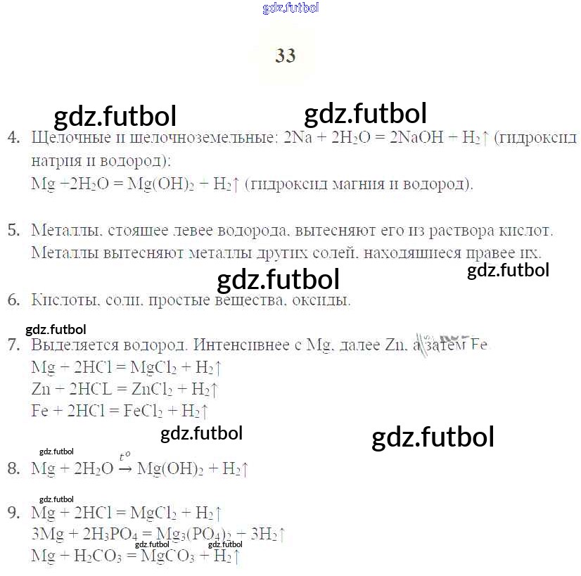 Готовые домашние задания по Химии за 9 класс Микитюк Рабочая тетрадь УМК 2014 ФГОС - Урок 12. Химические свойства металлов стр.33