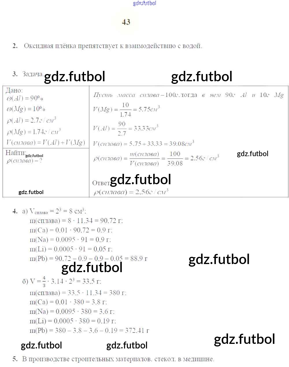 Готовые домашние задания по Химии за 9 класс Микитюк Рабочая тетрадь УМК 2014 ФГОС - Урок 16. Бериллий, магний и щелочноземельные металлы стр.43