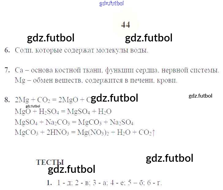 Готовые домашние задания по Химии за 9 класс Микитюк Рабочая тетрадь УМК 2014 ФГОС - Урок 16. Бериллий, магний и щелочноземельные металлы стр.44