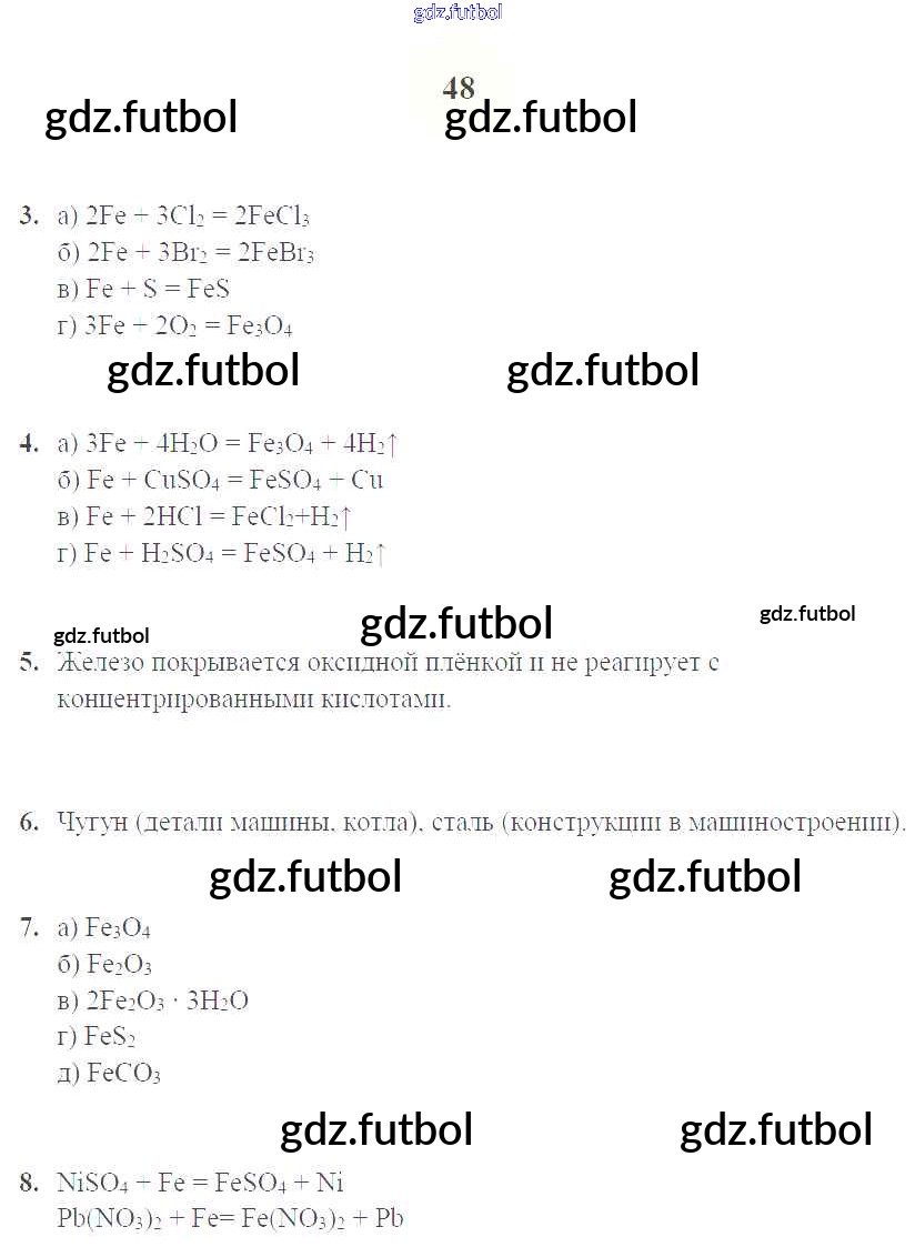 Готовые домашние задания по Химии за 9 класс Микитюк Рабочая тетрадь УМК 2014 ФГОС - Урок 18. Железо стр.48