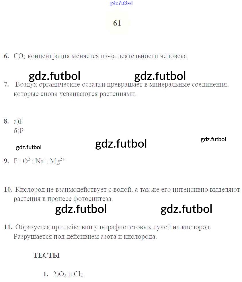 Готовые домашние задания по Химии за 9 класс Микитюк Рабочая тетрадь УМК 2014 ФГОС - Урок 22. Неметаллы: атомы и простые вещества стр.61