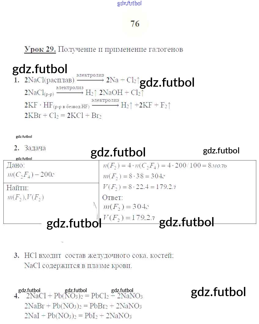 Готовые домашние задания по Химии за 9 класс Микитюк Рабочая тетрадь УМК 2014 ФГОС - Урок 29. Получение и применение галогенов стр.76