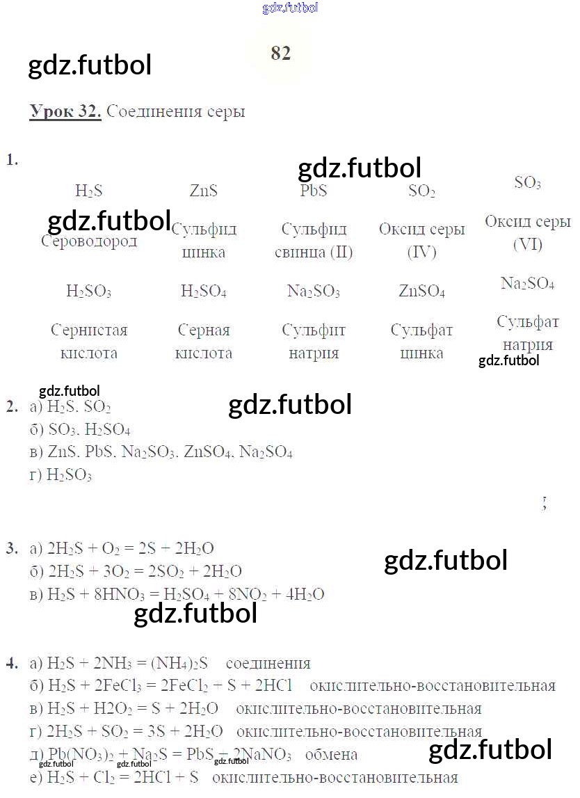 Готовые домашние задания по Химии за 9 класс Микитюк Рабочая тетрадь УМК 2014 ФГОС - Урок 32. Соединения серы стр.82