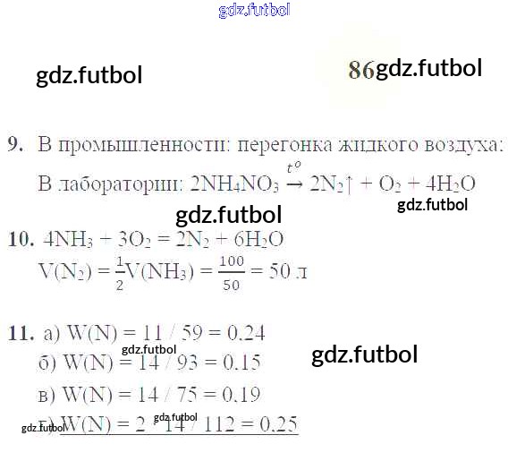 Готовые домашние задания по Химии за 9 класс Микитюк Рабочая тетрадь УМК 2014 ФГОС - Урок 33. Азот стр.86