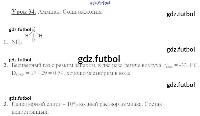 Готовые домашние задания по Химии за 9 класс Микитюк Рабочая тетрадь УМК 2014 ФГОС - Урок 34. Аммиак. Соли аммония стр.86