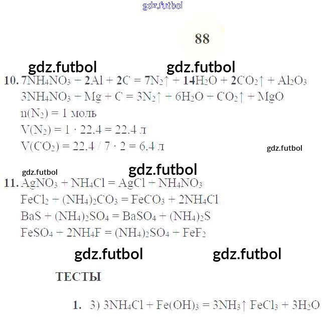 Готовые домашние задания по Химии за 9 класс Микитюк Рабочая тетрадь УМК 2014 ФГОС - Урок 34. Аммиак. Соли аммония стр.88