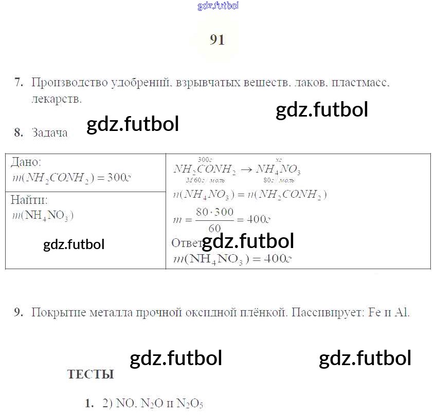 Готовые домашние задания по Химии за 9 класс Микитюк Рабочая тетрадь УМК 2014 ФГОС - Урок 35. Кислородные соединения азота стр.91