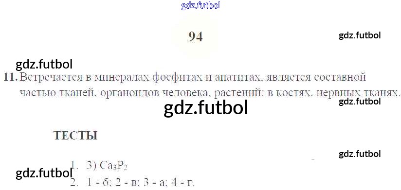Готовые домашние задания по Химии за 9 класс Микитюк Рабочая тетрадь УМК 2014 ФГОС - Урок 36. Фосфор и его соединения стр.94