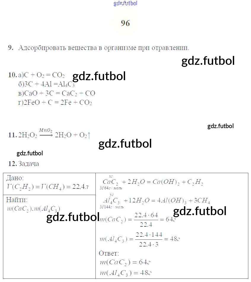 Готовые домашние задания по Химии за 9 класс Микитюк Рабочая тетрадь УМК 2014 ФГОС - Урок 37. Углерод стр.96