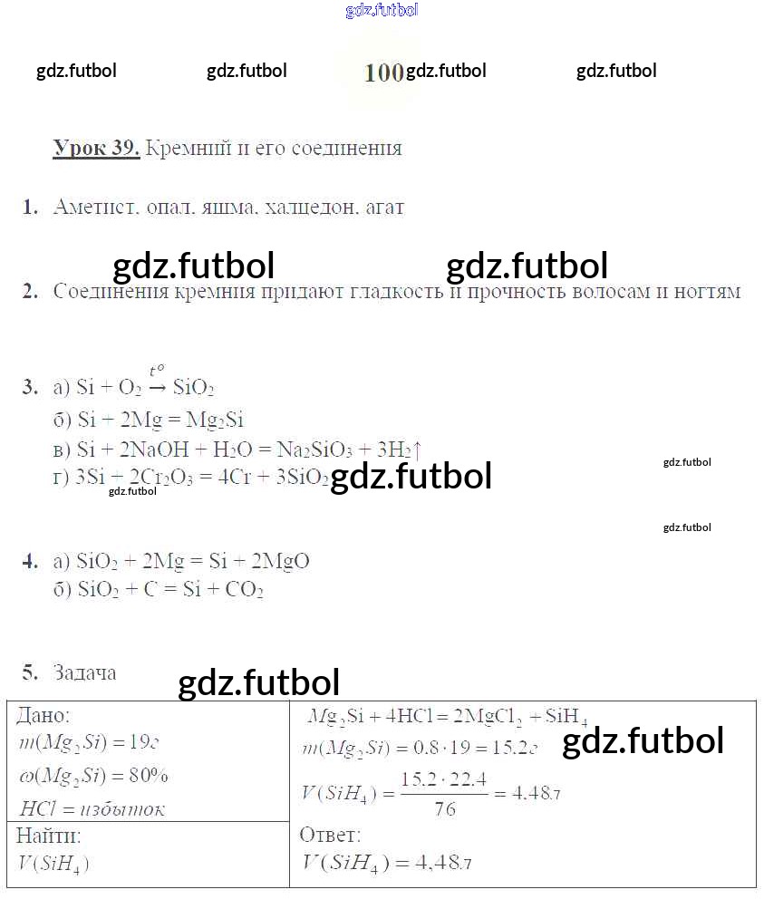 Готовые домашние задания по Химии за 9 класс Микитюк Рабочая тетрадь УМК 2014 ФГОС - Урок 39. Кремний и его соединения стр.100