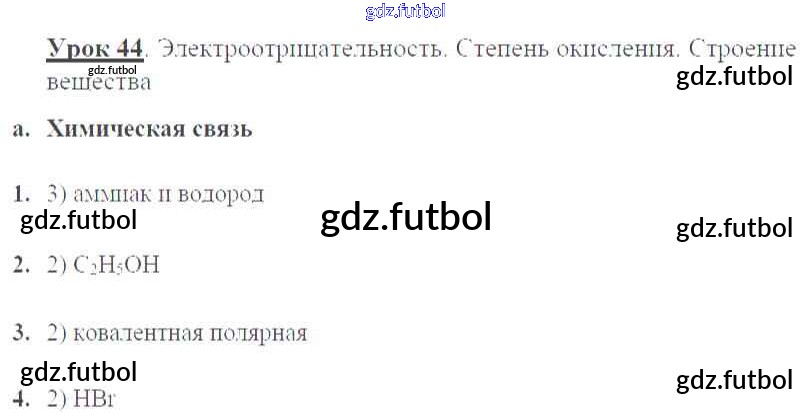 Готовые домашние задания по Химии за 9 класс Микитюк Рабочая тетрадь УМК 2014 ФГОС - Урок 44. Электроотрицательность. Степень окисления стр.119