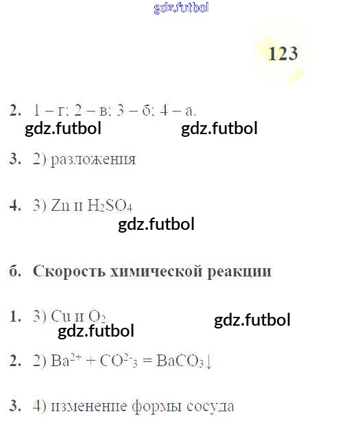 Готовые домашние задания по Химии за 9 класс Микитюк Рабочая тетрадь УМК 2014 ФГОС - Урок 45. Классификация химических реакций стр.123