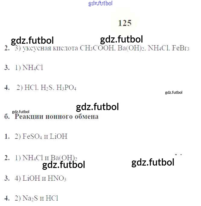 Готовые домашние задания по Химии за 9 класс Микитюк Рабочая тетрадь УМК 2014 ФГОС - Урок 46. Диссоциация электролитов в водных растворах стр.125