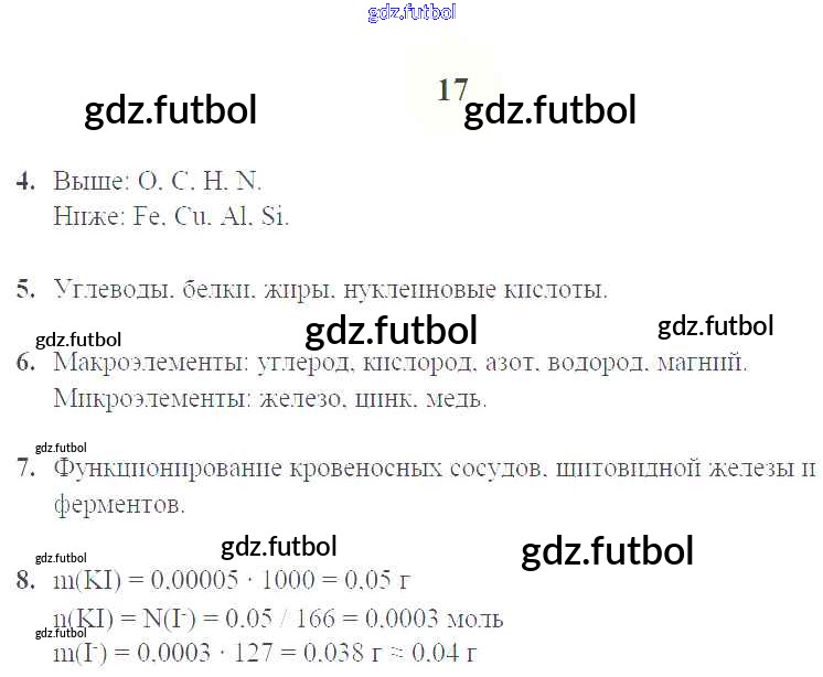Готовые домашние задания по Химии за 9 класс Микитюк Рабочая тетрадь УМК 2014 ФГОС - Урок 5. Химическая организация природы стр.17