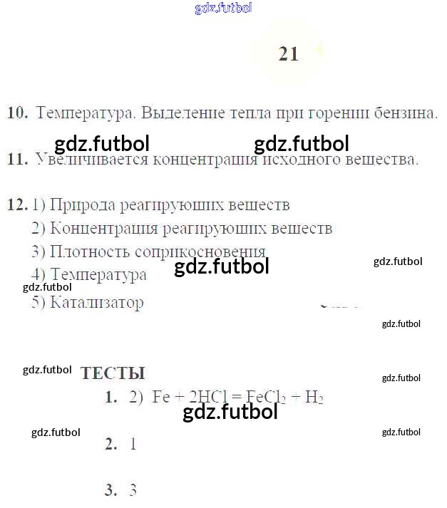 Готовые домашние задания по Химии за 9 класс Микитюк Рабочая тетрадь УМК 2014 ФГОС - Урок 6. Химические реакции. Скорость химической реакции стр.21