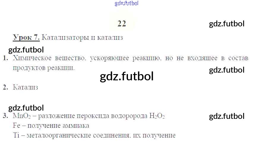Готовые домашние задания по Химии за 9 класс Микитюк Рабочая тетрадь УМК 2014 ФГОС - Урок 7. Катализаторы и катализ стр.22