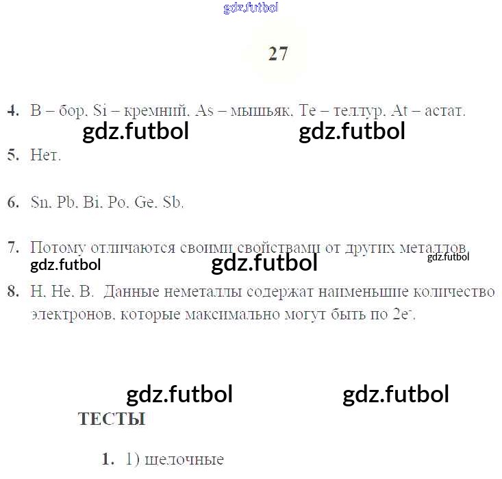 Готовые домашние задания по Химии за 9 класс Микитюк Рабочая тетрадь УМК 2014 ФГОС - Урок 9. Металлы — элементы таблицы Д.И. Менделеева, строение атомов стр.27