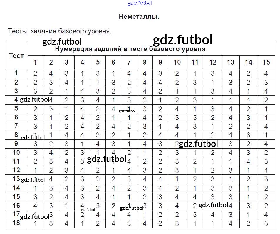 Готовые домашние задания по Химии за 9 класс Рябов Тесты УМК 2016 ФГОС - Неметаллы №1. Неметаллы. Задания базового уровня