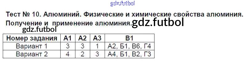 Готовые домашние задания по Химии за 9 класс Стрельникова Контрольно-измерительные материалы (КИМ) 2017 ФГОС - Тесты Тест №10. Алюминий. Физические и химические свойства алюминия
