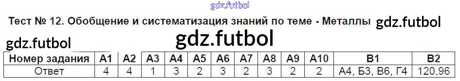 Готовые домашние задания по Химии за 9 класс Стрельникова Контрольно-измерительные материалы (КИМ) 2017 ФГОС - Тесты Тест №12. Обобщение и систематизация знаний по теме - Металлы