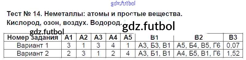 Готовые домашние задания по Химии за 9 класс Стрельникова Контрольно-измерительные материалы (КИМ) 2017 ФГОС - Тесты Тест №14. Неметаллы - атомы и простые вещества