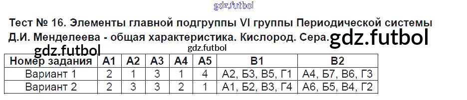 Готовые домашние задания по Химии за 9 класс Стрельникова Контрольно-измерительные материалы (КИМ) 2017 ФГОС - Тесты Тест №16. Элементы главной подгруппы vi группы Периодической системы Д.И. Менделеева - общая характеристика. Кислород. Сера