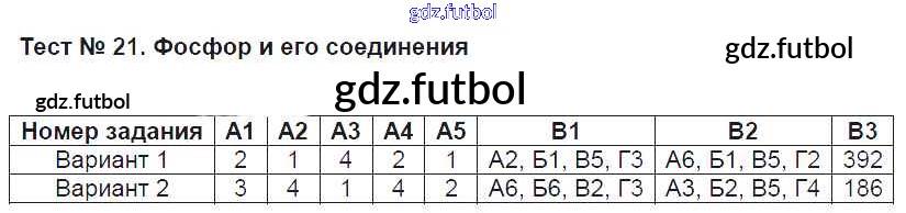 Готовые домашние задания по Химии за 9 класс Стрельникова Контрольно-измерительные материалы (КИМ) 2017 ФГОС - Тесты Тест №21. Фосфор и его соединения