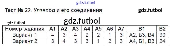 Готовые домашние задания по Химии за 9 класс Стрельникова Контрольно-измерительные материалы (КИМ) 2017 ФГОС - Тесты Тест №22. Углерод и его соединения