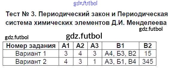 Готовые домашние задания по Химии за 9 класс Стрельникова Контрольно-измерительные материалы (КИМ) 2017 ФГОС - Тесты Тест №3. Периодический закон и Периодическая система химических элементов Д.И. Менделеева