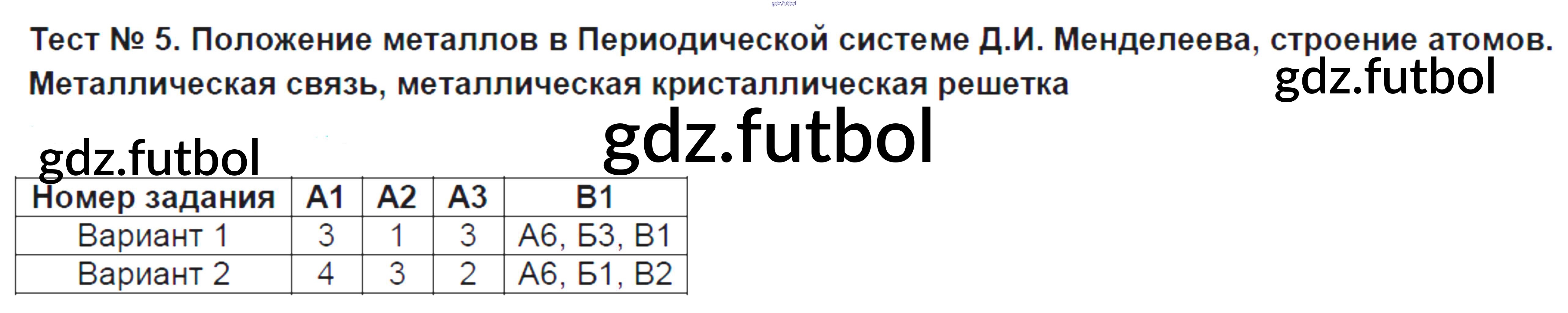 Готовые домашние задания по Химии за 9 класс Стрельникова Контрольно-измерительные материалы (КИМ) 2017 ФГОС - Тесты Тест №5. Положение металлов в Периодической системе Д.И. Менделеева, строение атомов