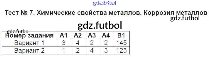 Готовые домашние задания по Химии за 9 класс Стрельникова Контрольно-измерительные материалы (КИМ) 2017 ФГОС - Тесты Тест №7. Химические свойства металлов. Коррозия металлов