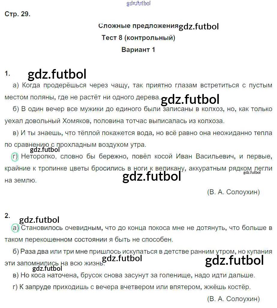 Готовые домашние задания по Русскому языку за 9 класс Книгина Тесты 2013 ФГОС - Часть 2. Страницы 29