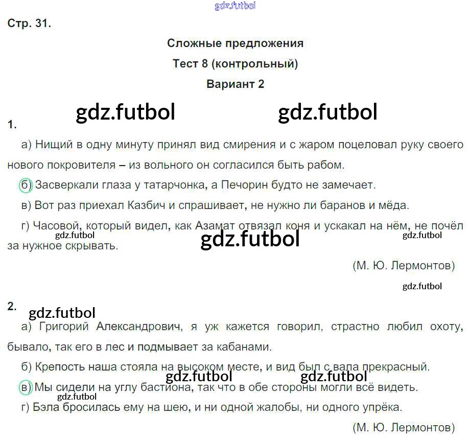 Готовые домашние задания по Русскому языку за 9 класс Книгина Тесты 2013 ФГОС - Часть 2. Страницы 31