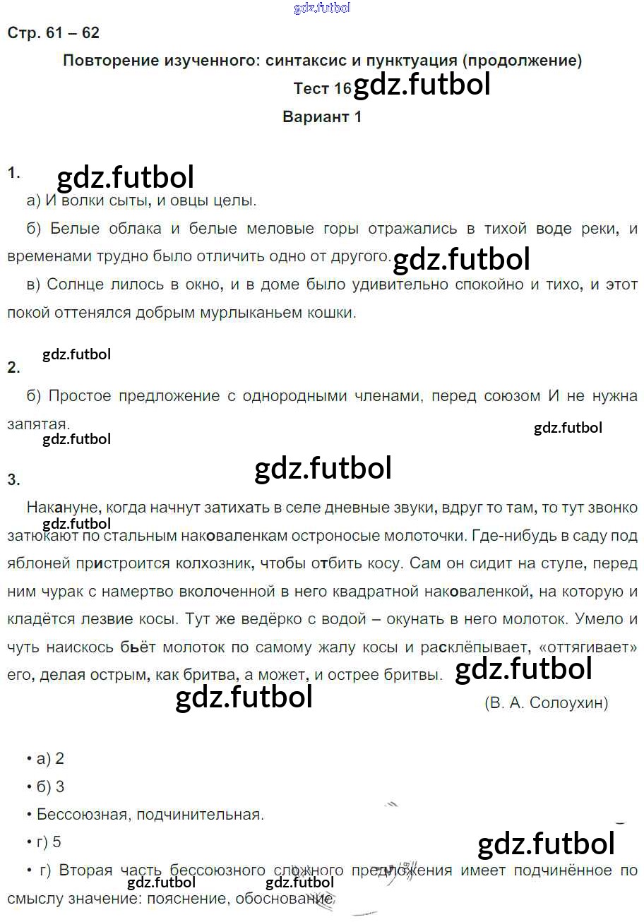 Готовые домашние задания по Русскому языку за 9 класс Книгина Тесты 2013 ФГОС - Часть 2. Страницы 62