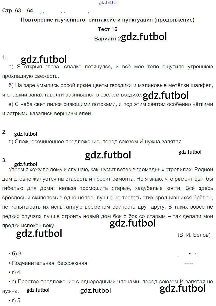 Готовые домашние задания по Русскому языку за 9 класс Книгина Тесты 2013 ФГОС - Часть 2. Страницы 64
